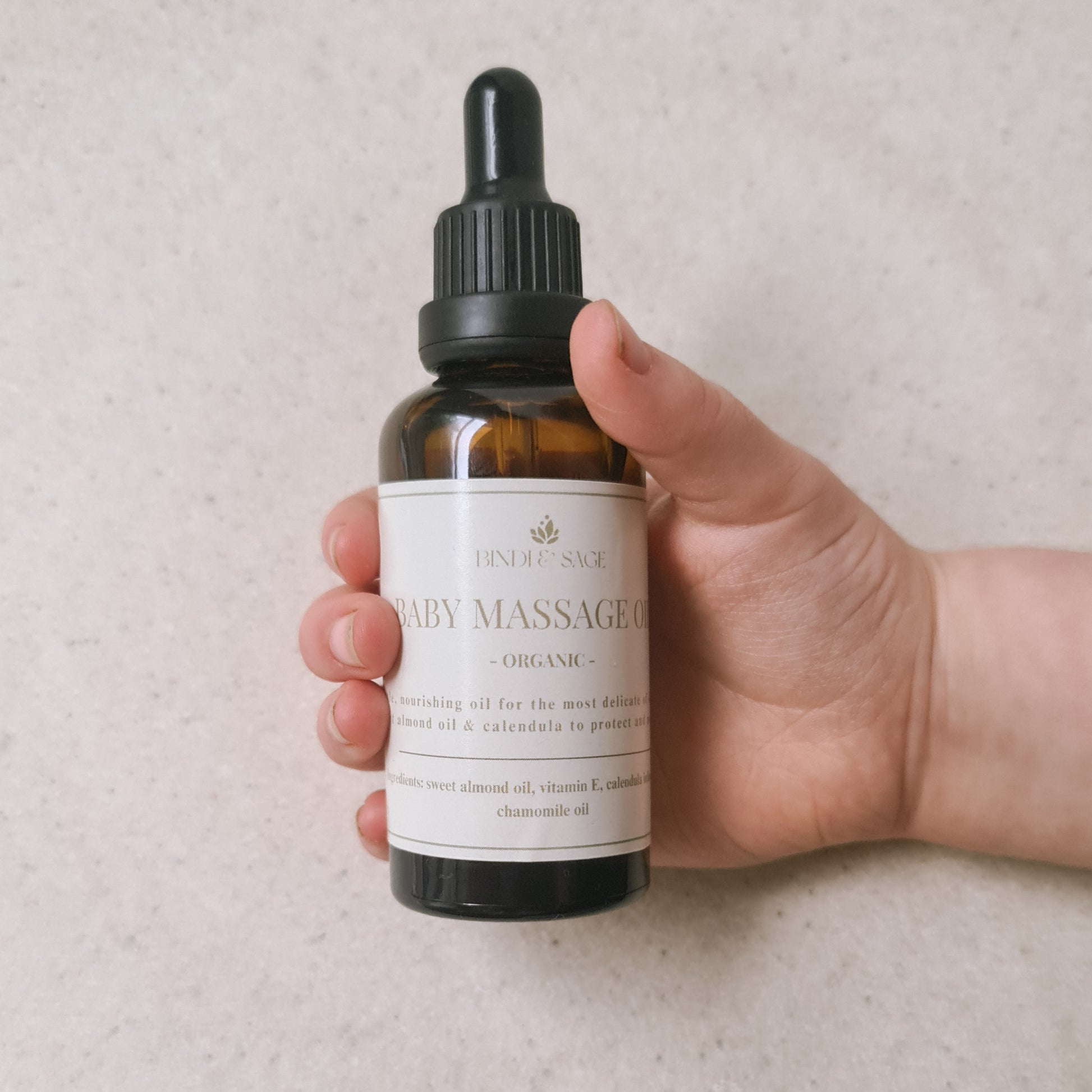 Ingredients: Organic Sweet Almond Oil, Calendula Infused Oil, Vitamin E, Chamomile Essential Oil